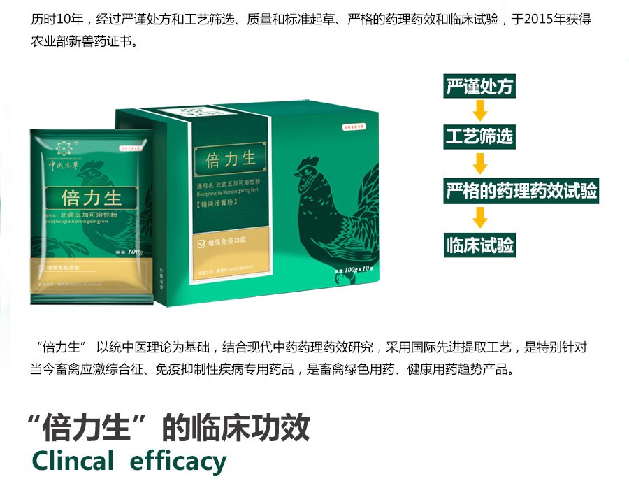 國家三類新獸藥。 抗應激、增強免疫用方藥。
